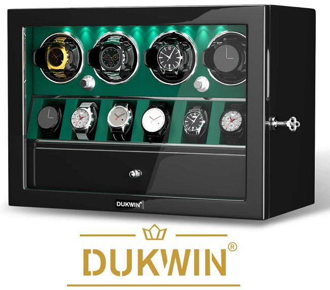dukwin 10 watch display organizer with 4 automatic winders - 18.1" x 7.8" x 12.5" - green (model: yr22c-046)