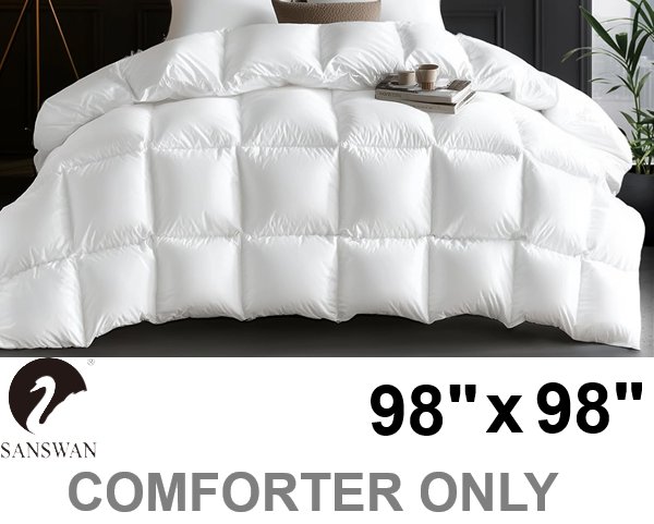 SanSwan Luxury Goose Down Fluffy All-Season Comforter - Plus size Queen - 98" x 98" - White