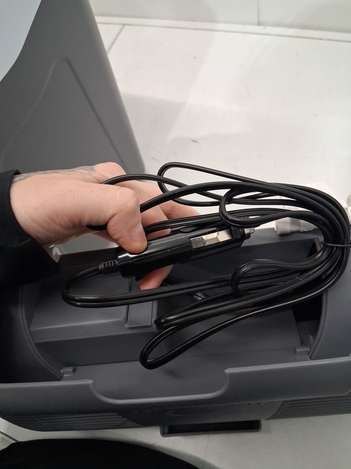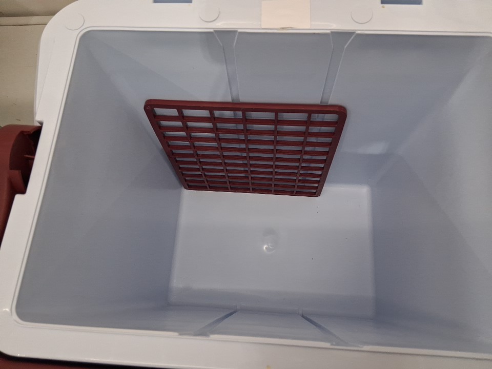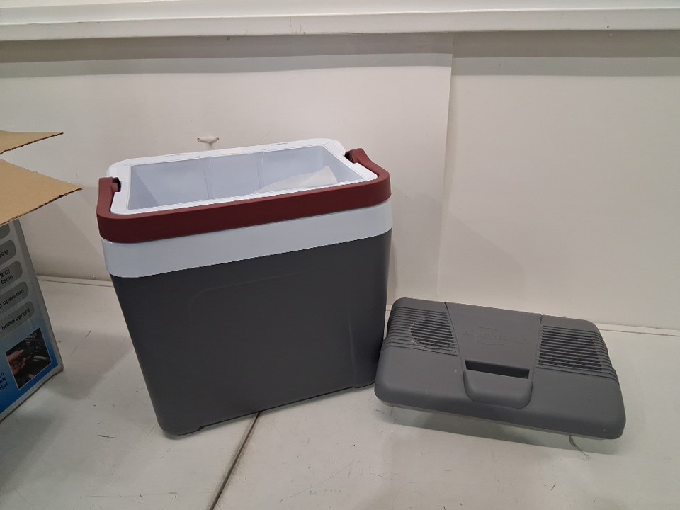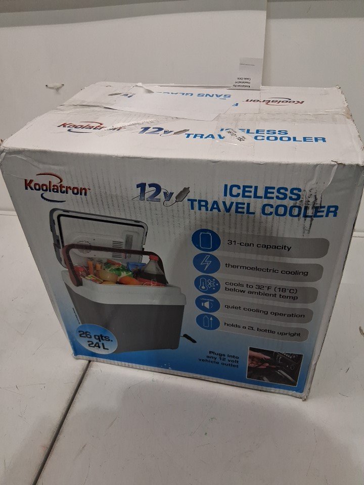 KOOLATRON FUN KOOL PORTABLE THERMOELECTRIC ICELESS TRAVEL COOLER - 24L/26QT- 12V DC - GREY/RED - (MODEL: P25)