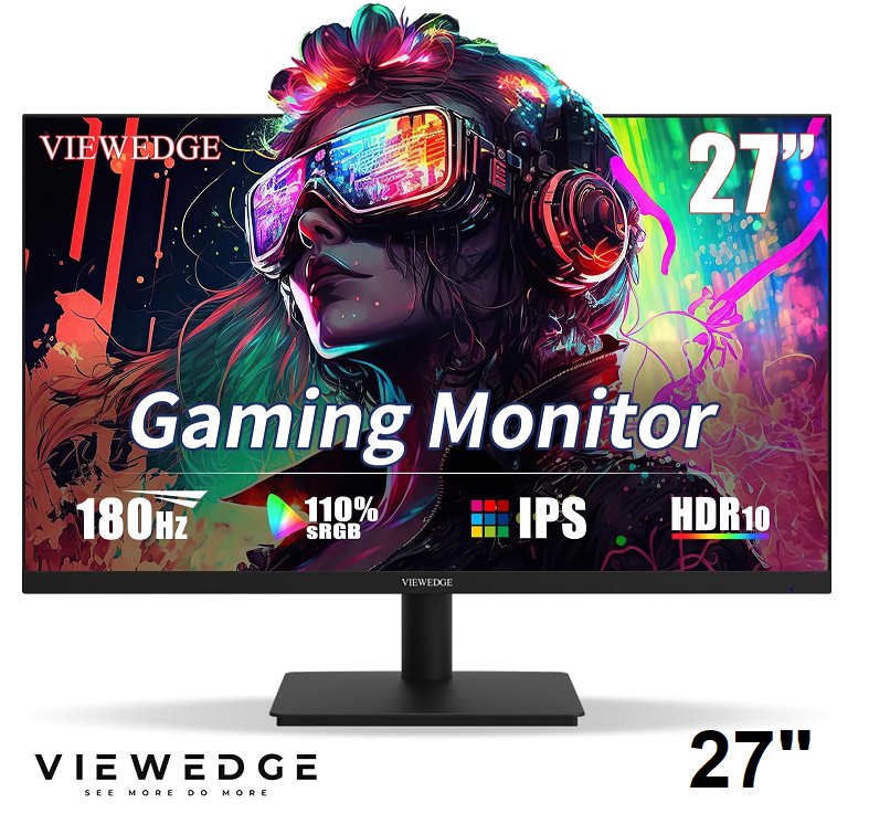 viewedge 27" 180hz gaming monitor(supports 144hz/165hz) 1ms, 110% srgb with hdr 10 - 1080p ips screen, dp hdmi, built-in speakers - BLACK (model: cs27fh)