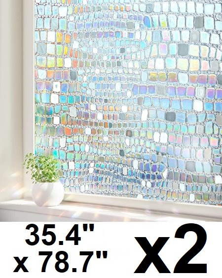2 Windimiley Decorative 3D Rainbow Window Privacy/Sun Blocking Film Cling - 35.4" x 78.7" - pure