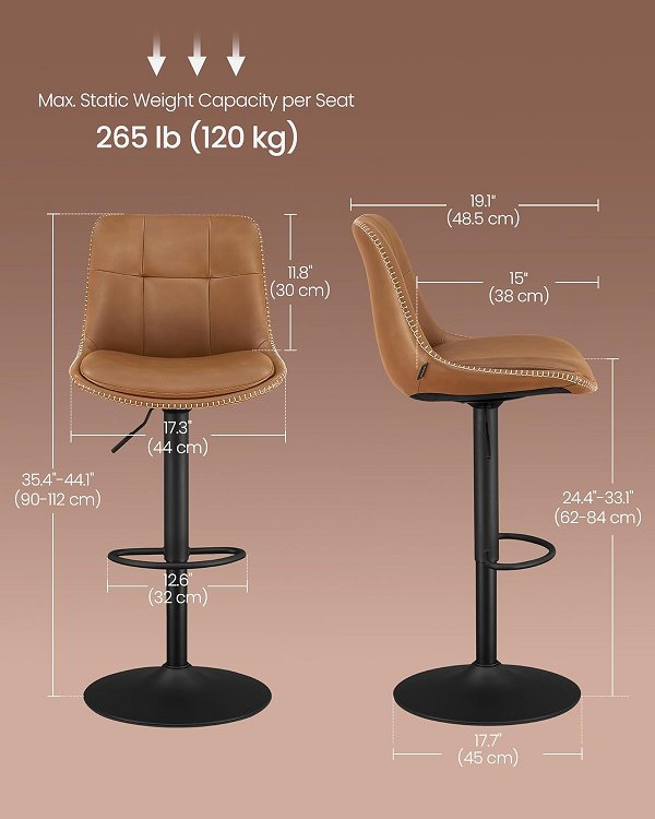 VASAGLE Swivel HEIGHT ADJUSTABLE Bar Stool - 35" - 44" x 17" x 11" - brown (model: LJB095K01)