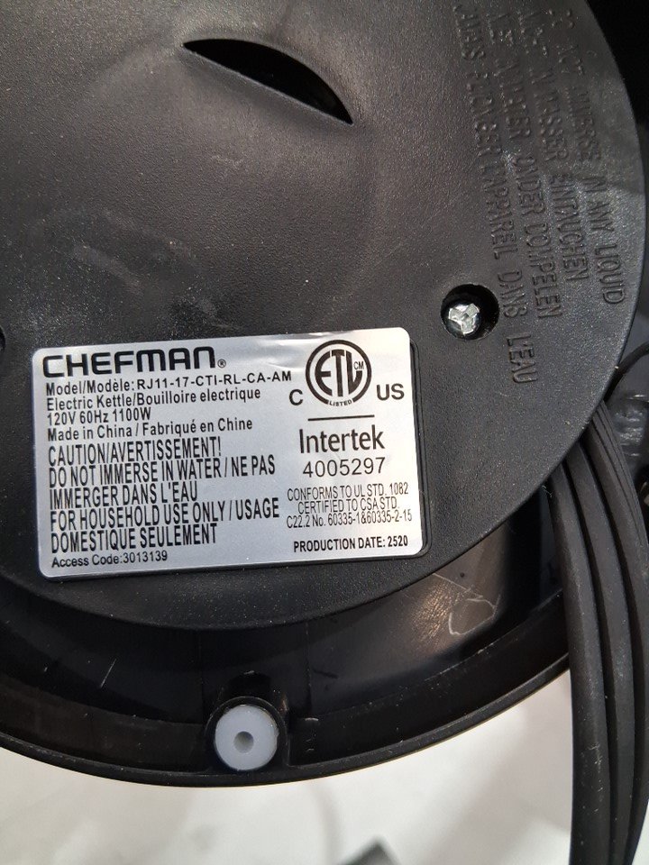 CHEFMAN ELECTRIC custom temp GLASS KETTLE WITH TEA INFUSER - 1.8L - STAINLESS STEEL (MODEL: RJ11-17-CTI-RL-ca-am)