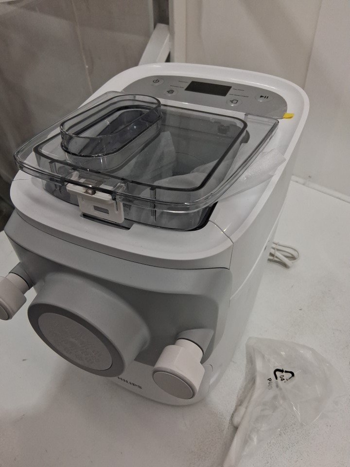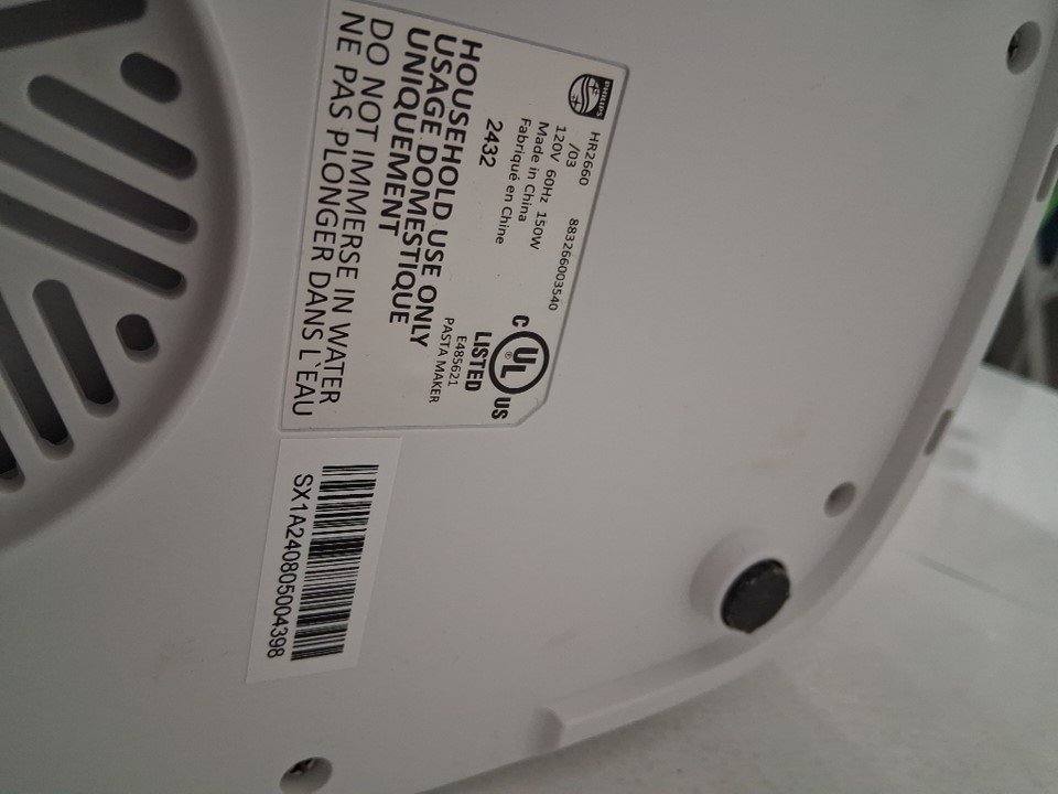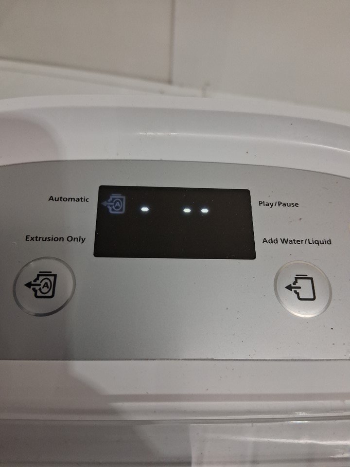 Smell of pasta/flour, small amounts of dough flour on top. Tested for power.