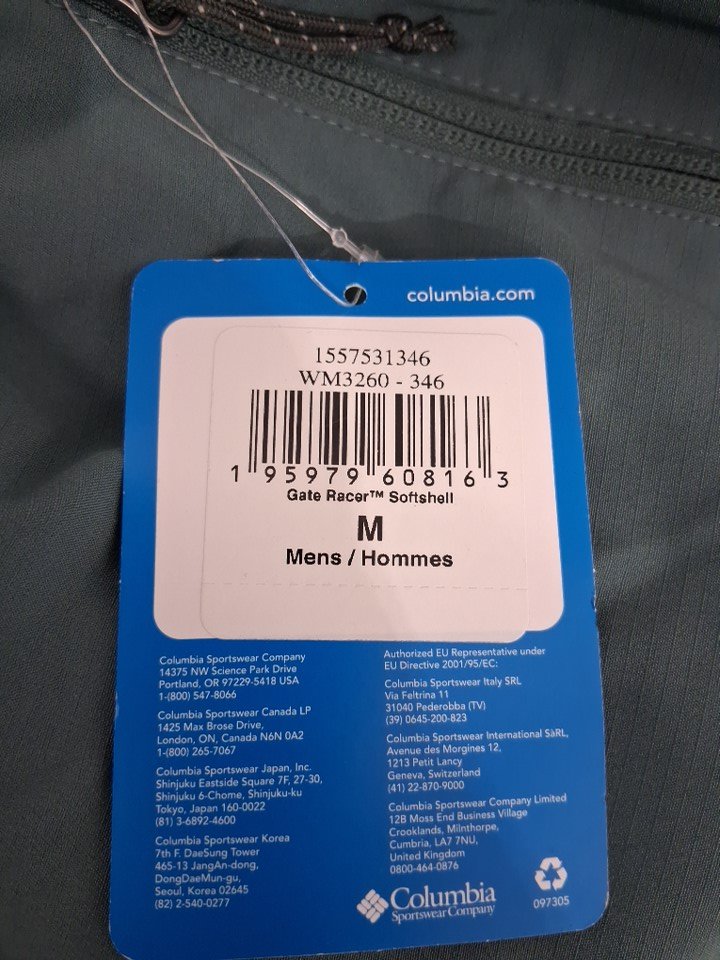 mens Columbia gate racer softshell water repellent jacket with hood - Med -