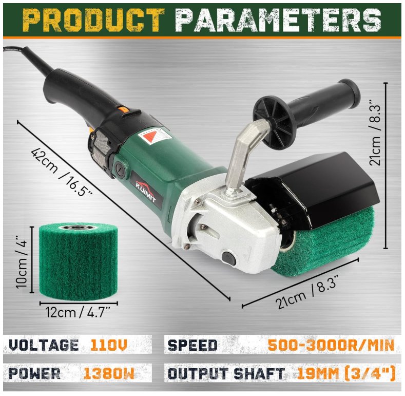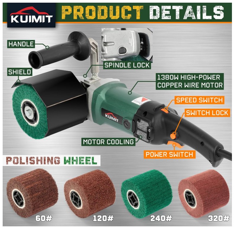 5pc KUIMITBurnishing Polishing Machine - with 4 Non-woven Burnishing Wheels (60# 120# 240# 320#) - 1400w - green
