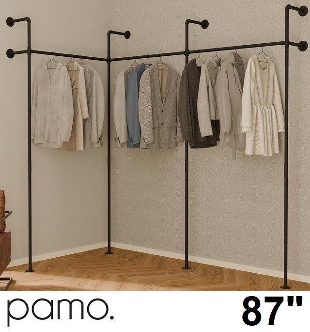 pamo wall kim iii edge mounted industrial pipe clothing rack - 660lb capacity - 87" height - black (model: P-01-045)