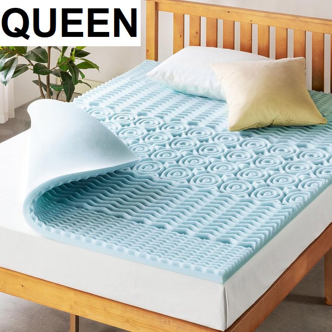5-ZONE Memory Foam Mattress Topper, Cooling Gel Infusion - QUEEN 60" X 80" X 1.5" - BLUE