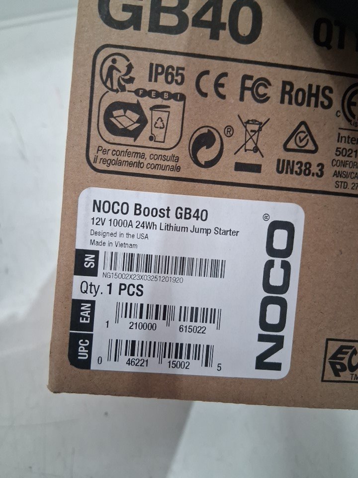 noco Boost Plus UltraSafe Lithium Jump Starter *OLD VERSION* - 1000A, 12V - black (model: GB40)