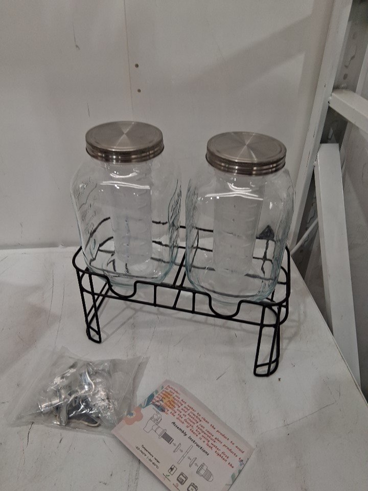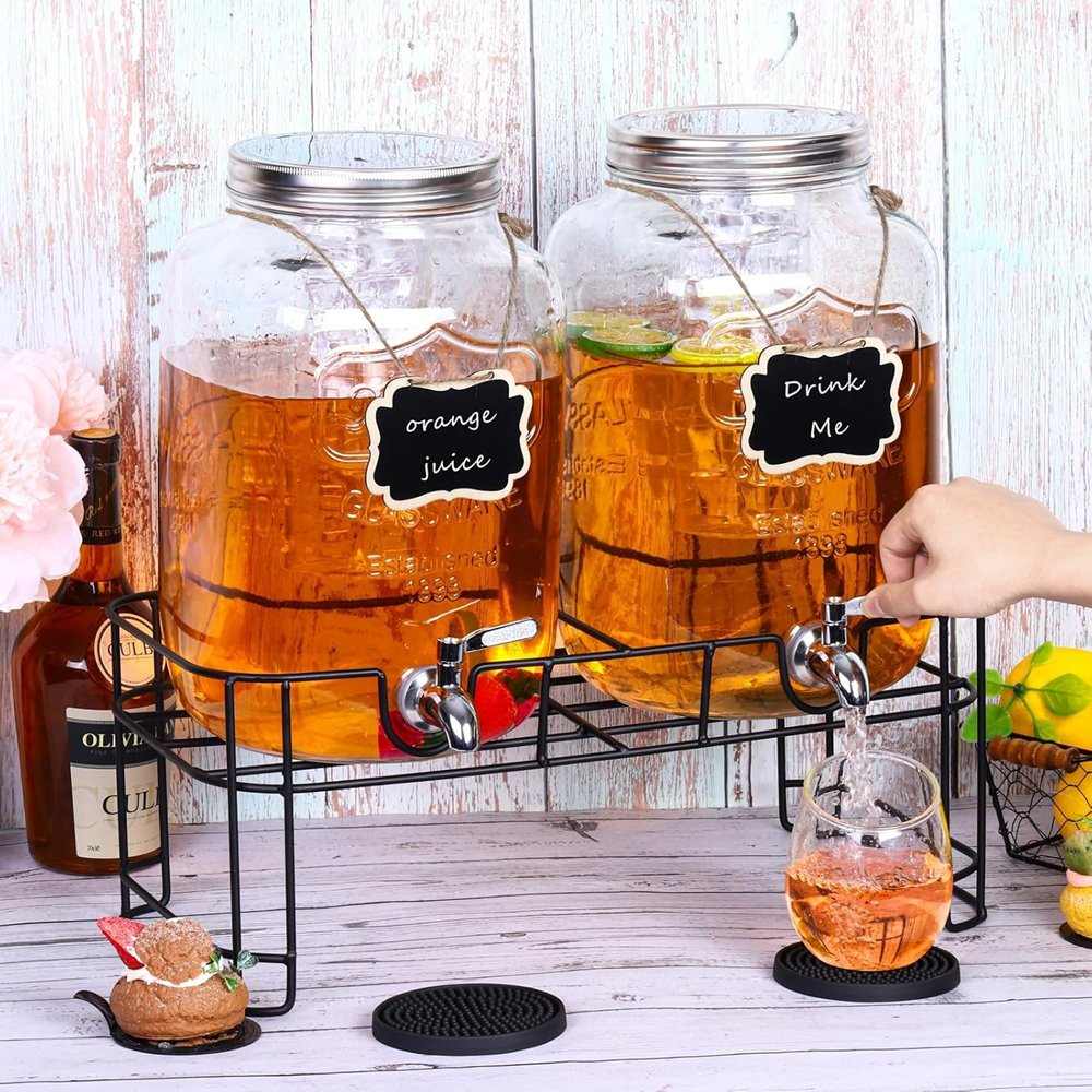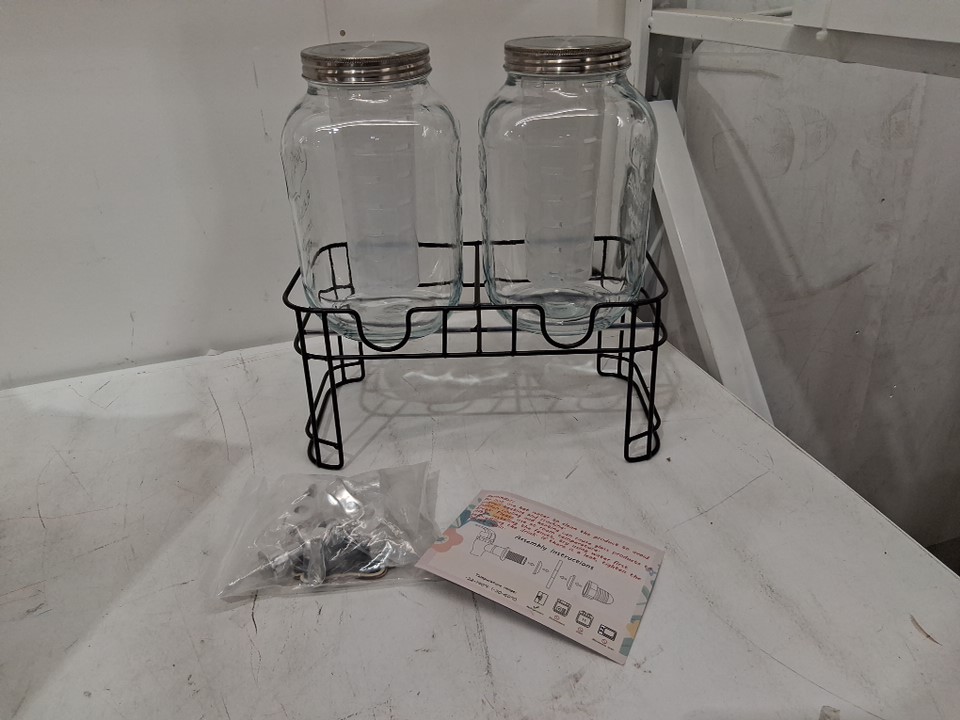 5PC TURSTIN Glass Beverage Drink Dispenser with Metal Stand and Ice Cylinders - 2 Gallon -