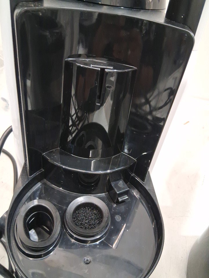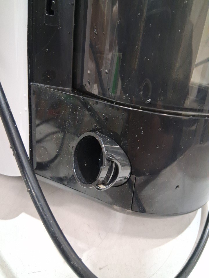 Water came out of the spot cleaner during inspection, indicating prior use.