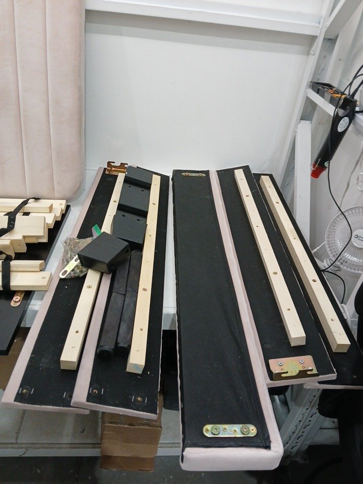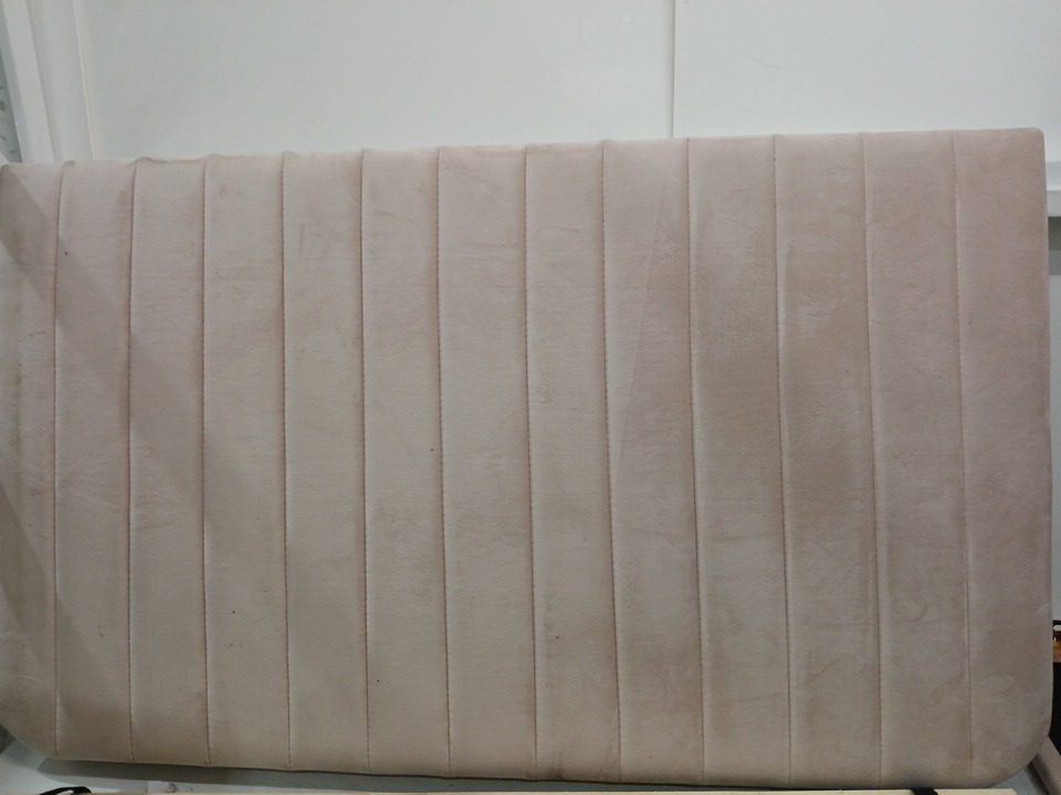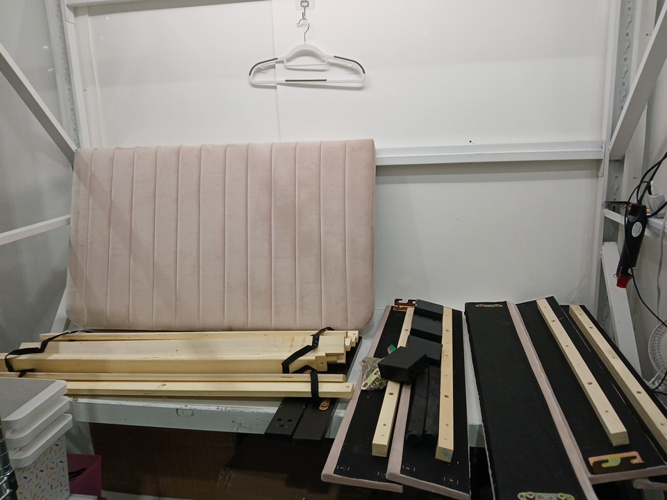 item has holes in the backside of the headboard and has dust all over from inspection process.