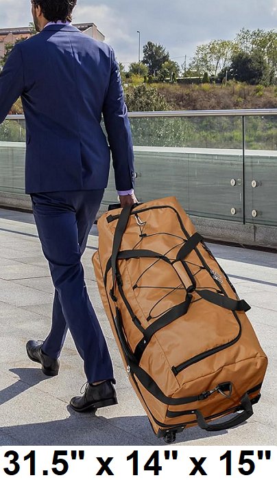 Bagenerous Expandable Soft-Sided Foldable Duffle Bag with 2 Rubber Wheels - 31.5" x 14" x 15" - 110L Cap - Coffee Brown