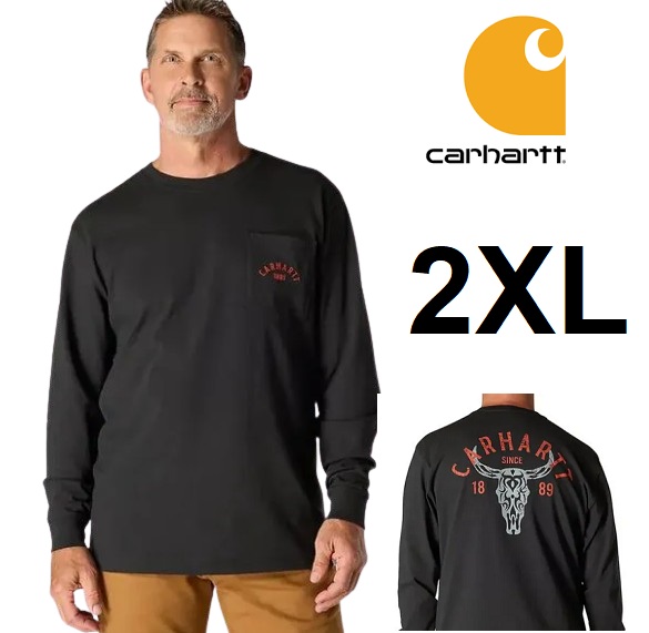 Men's Carhartt Loose Fit Heavyweight Long Sleeve Longhorn Graphic Shirt - 2xl - Black (Style: TK7259-m)