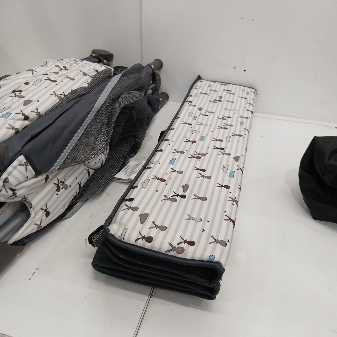 small stains visible from previous light use. Missing attachment for top with hanging plushies.