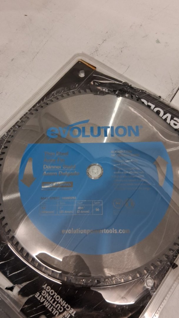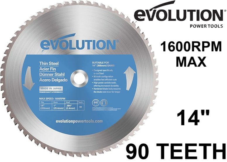 evolution thin blade, high grade carbide teeth, chop saw blade for cutting steel - 14" diameter, 90 teeth 1" bore- silver
