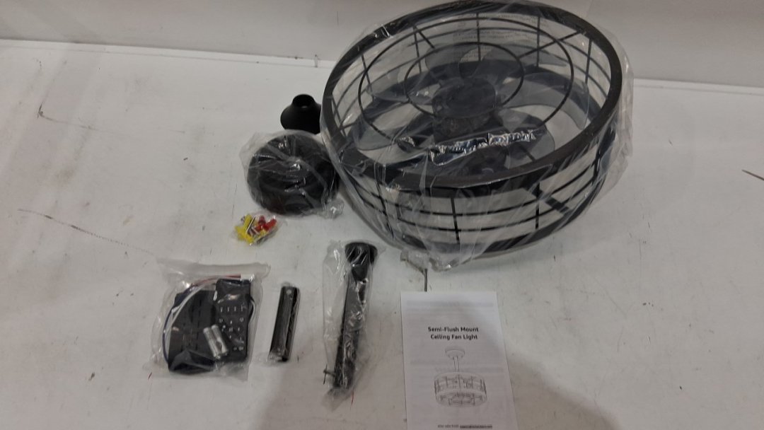 lediary industrial farmhouse style semi-flush mount caged ceiling fan with lights - 16.5" - black (model: y23fsd0006-2801)