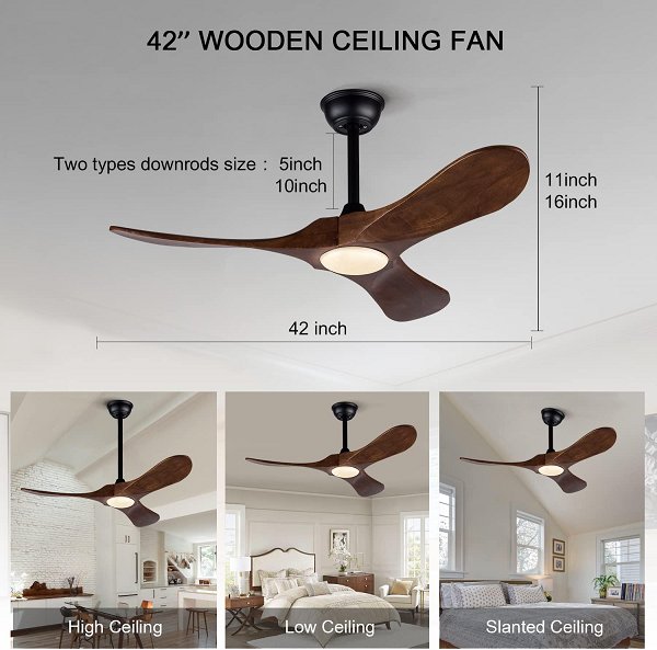 BOJUE indoor outdoor Ceiling Fan with Light and Remote Control - 42" - deep walnut
