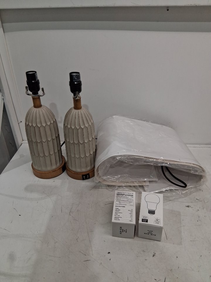 2pk cinkeda modern abstract bedside table lamps with built in usb and ac charging ports - 22" - ivory (model: td-ck-383)