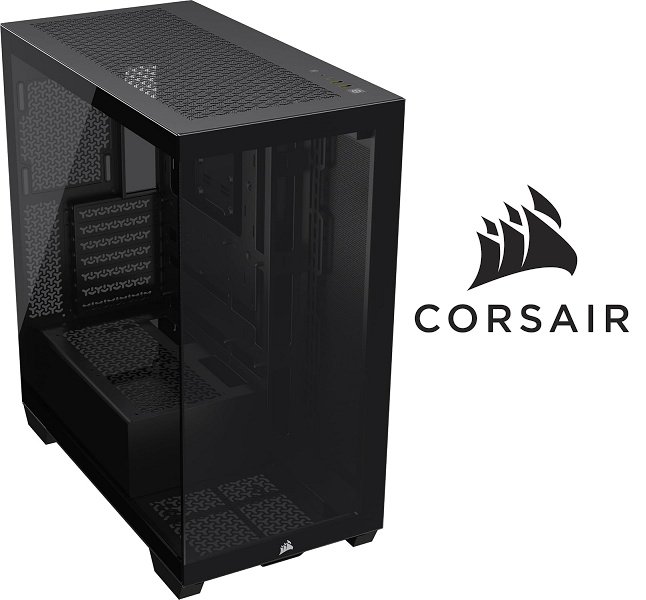 corsair 3500x mid-tower atx pc case with panoramic tempered glass - non-rgb - reverse connection motherboard compatible - black (model: CC-9011276-WW)