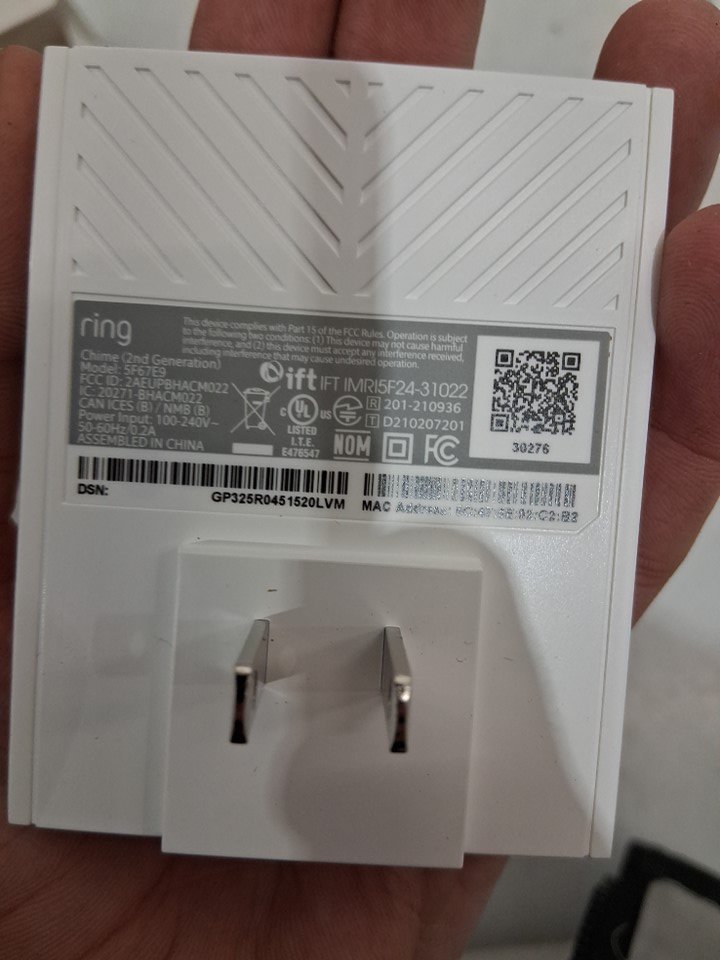 Ring Plug-in Chime (2nd Generation) for Ring Devices - White/Grey (Model: 5AT1S2)