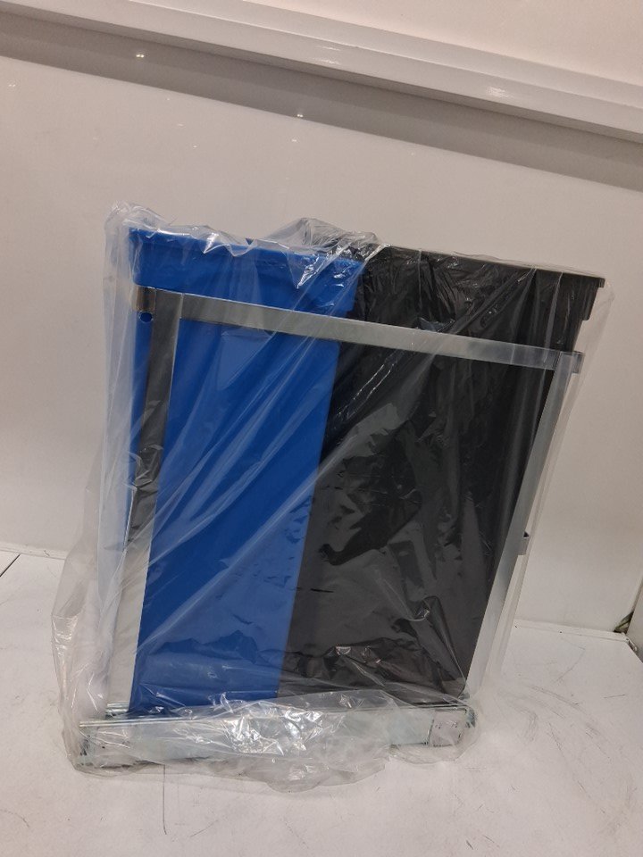 simplehuman under counter pull out recycle/trash dual compartment bins - 35L-9.8"x17.7"x19.1" - BLACK/BLUE/SILVER (model: DG)