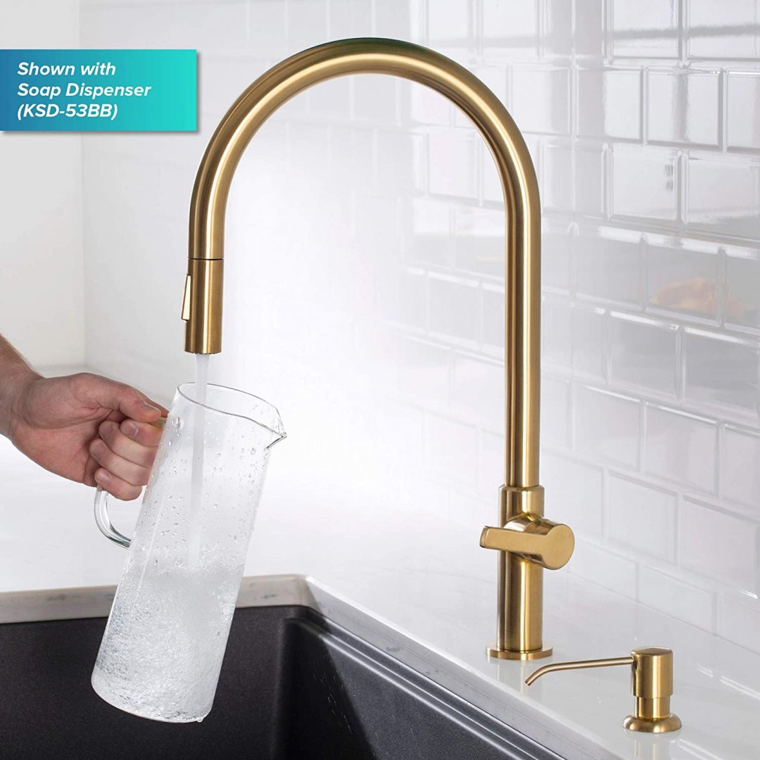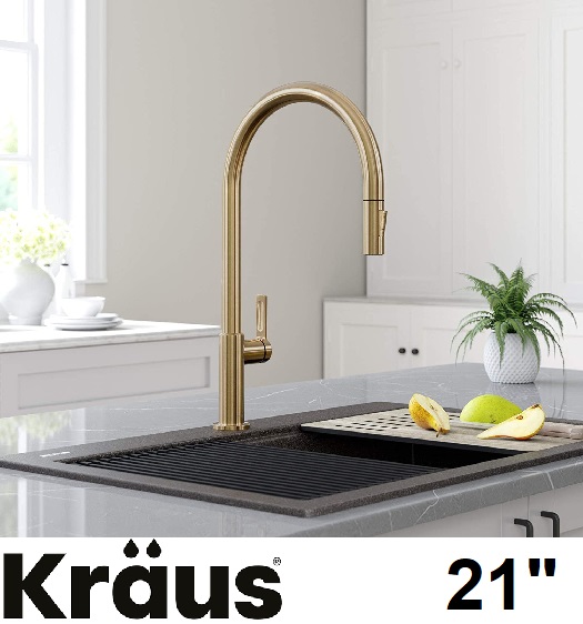 Kraus Oletto High-Arc Single Handle Pull-Down Kitchen Faucet - 21" - Brushed Brass (MODEL: KPF-2821BB)