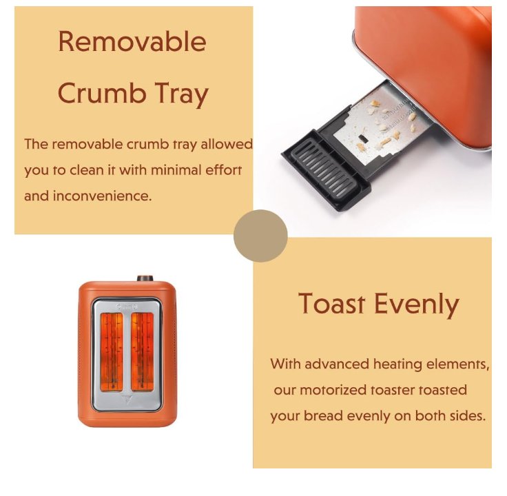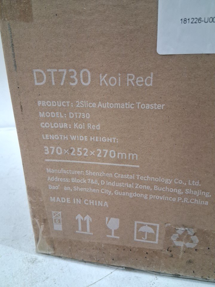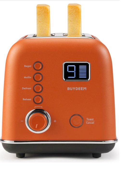 BUYDEEM 2-SLICE TOASTER Motorized Toaster, Smart Digital Leverless- KOI RED -( MODEL-DT730)