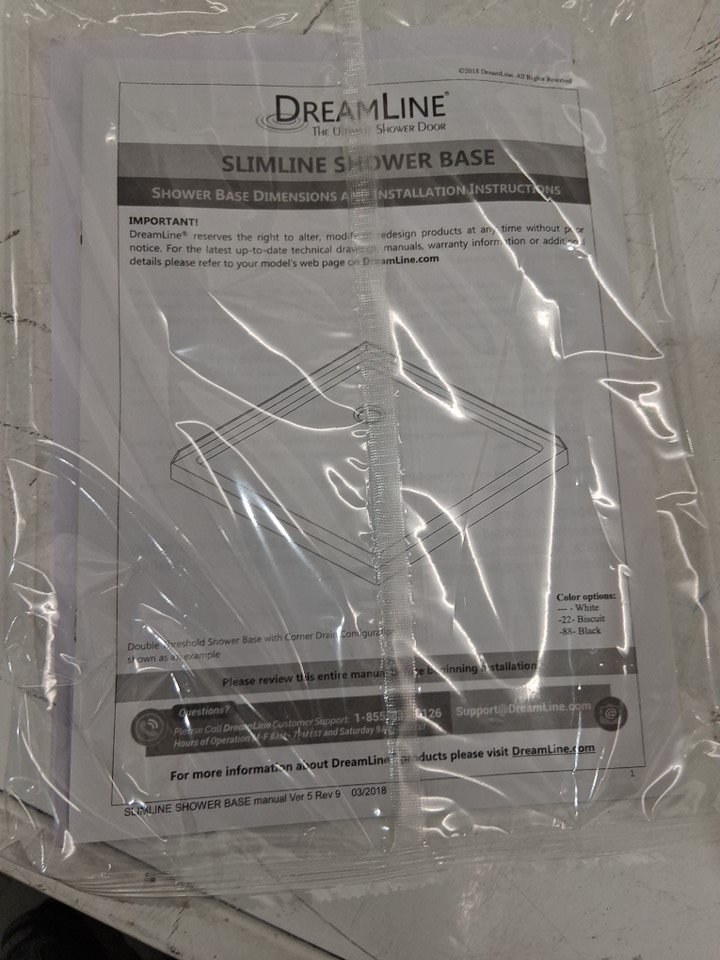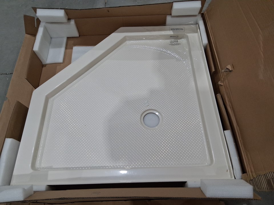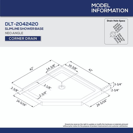 DREAMLINE SLIMLINE NEO-ANGLE SINGLE THRESHOLD SHOWER BASE, CORNER DRAIN, 42" x 42" (WHITE) (MODEL: DLT-2042420)