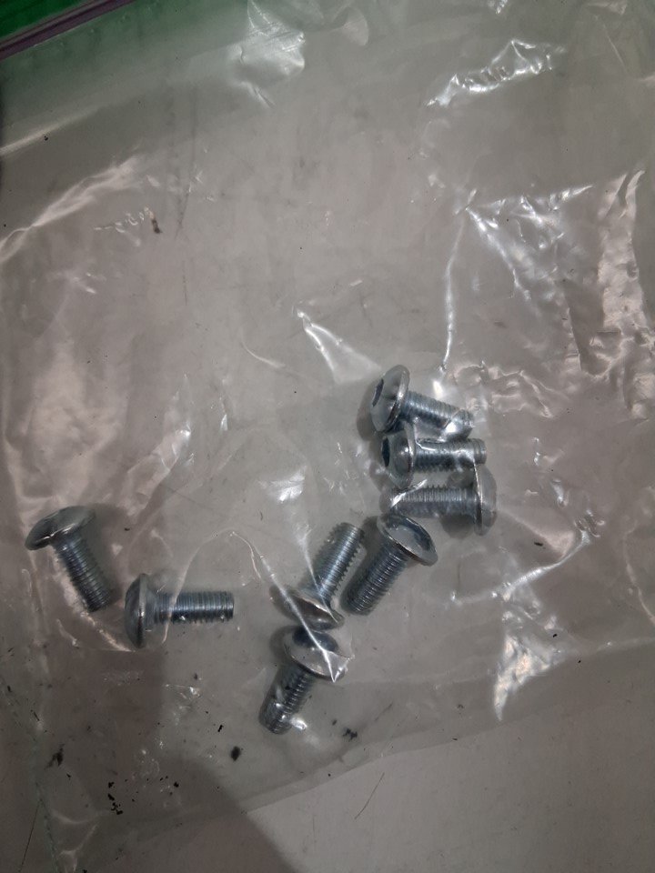 it was previously assembled and there was no manual in the box so we can't verify about the hardware. (see photos)
