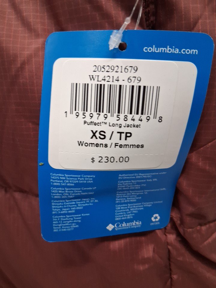 women's columbia puffect long puffer jacket- extra small- beetroot
