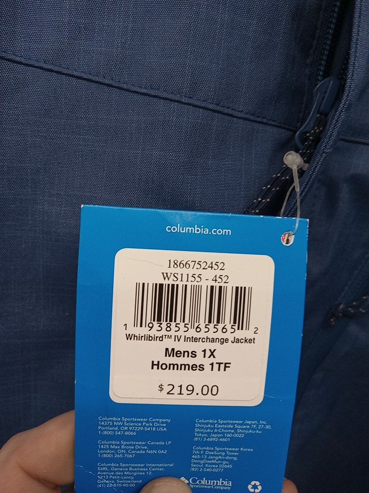 MEN'S plus size COLUMBIA WHIRLIBIRD IV INTERCHANGE JACKET - 1x - NIGHT TIDE MELANGE