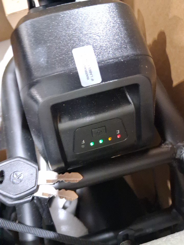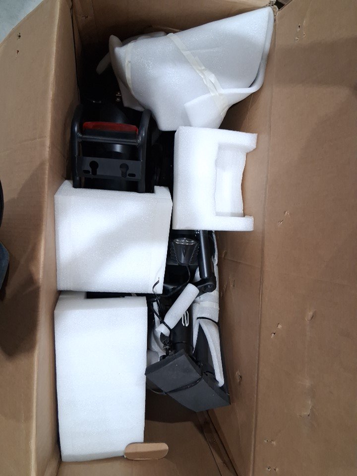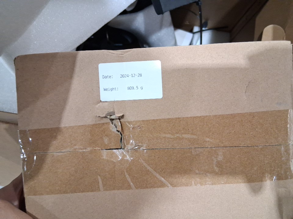 Item was sealed however the staples for the box were loose likely from shipping. The box was opened to ensure all pieces were in the box. All components were zip tied and wheels showed zero signs of use and hardware had factory sealed tape.