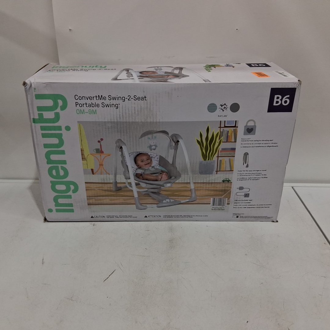 INFANT'S INGENUITY CONVERTME SWING-2-SEAT CHAIR - 0-9M - WHITE/GREY RAYLAN - (MODEL:B6)