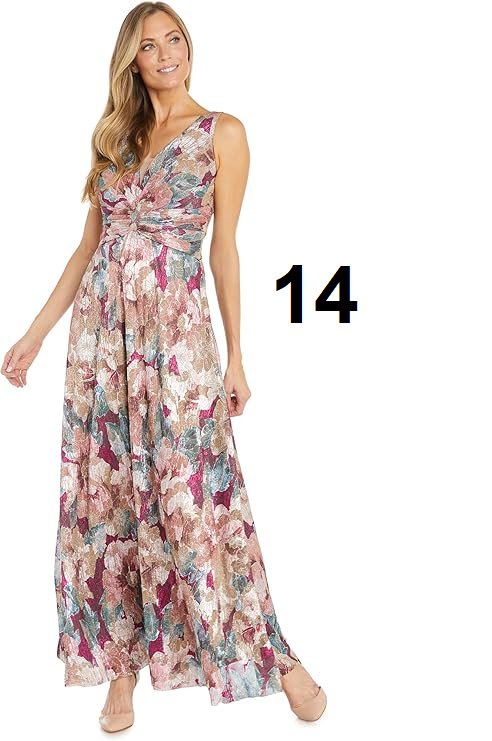 women's r & m richards metallic sleeveless v-neck floral pattern dress - size 14 - rose