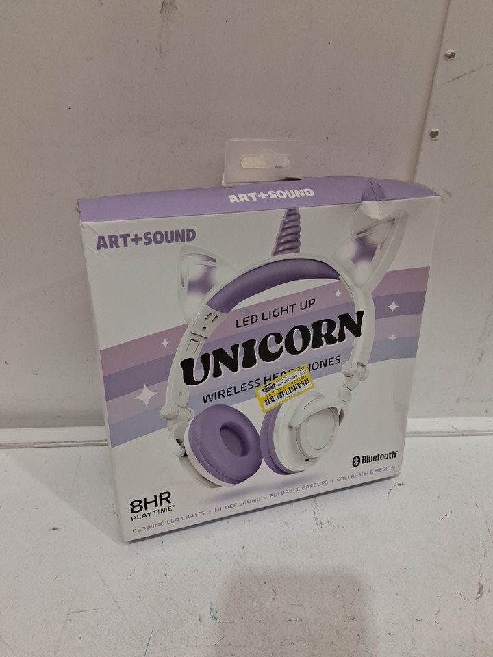 ART+SOUND LED Light Up unicorn Bluetooth Wireless / Wired Headphones with Built-In Microphone - purple