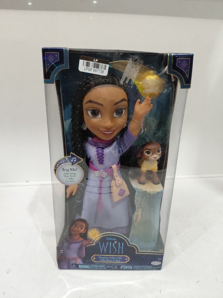 3PC DISNEY WISH SINGING ASHA WITH VALENTINO & STAR - 14" - PURPLE/BROWN/YELLOW (MODEL: 22997)