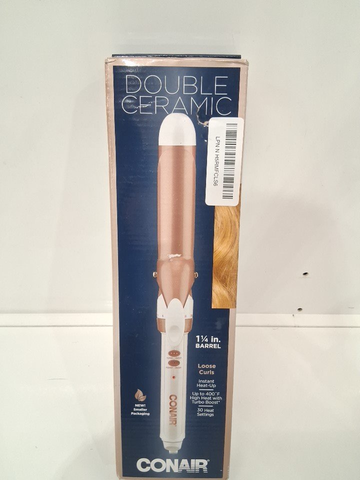 CONAIR DOUBLE CERAMIC CURLING IRON - 1 1/4" BARREL - WHITE/ROSE GOLD (MODEL: CD702GNC)