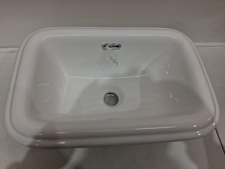 Karamag small Ceramic above counter Semi Recessed Bathroom vessel sink with faucet hole - 18"x 13.3" - white