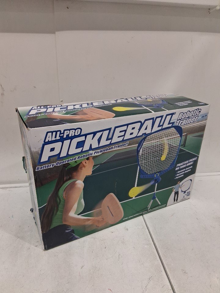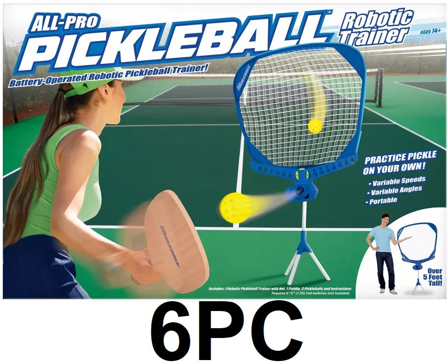 6pc all-pro passer pickle ball battery operated robotic trainer - (1) net, (1) launcher, (3) pickleballs, (1) paddle