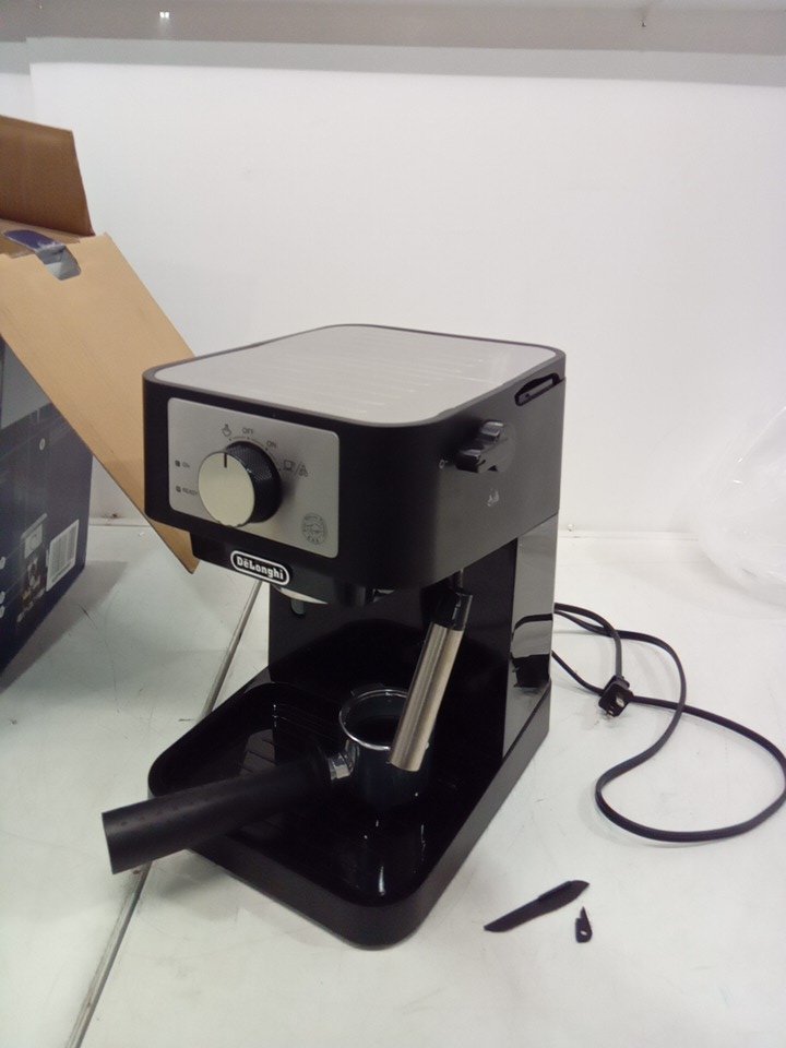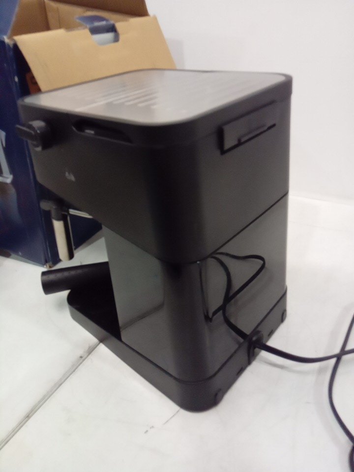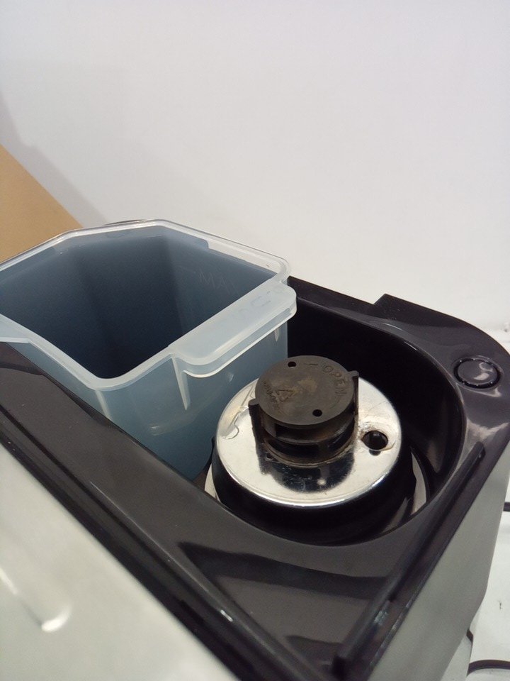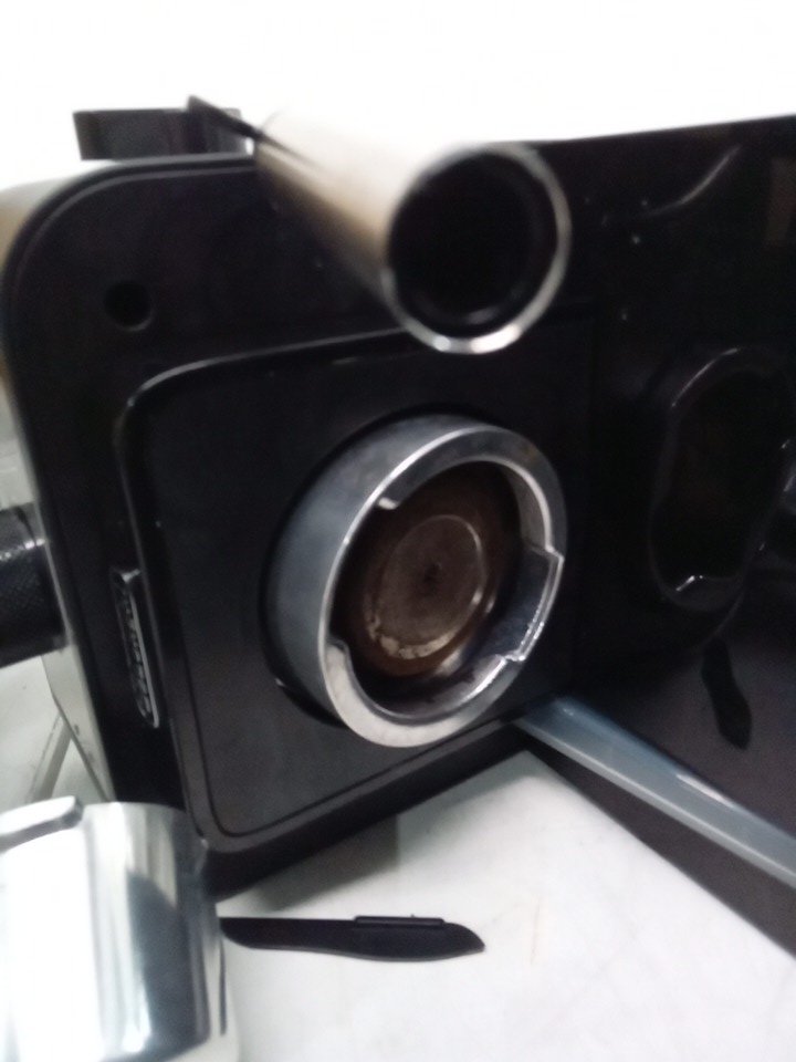 please note that there is minor coffee left inside the machine and the back lid is broken, please see all photos. tested for power.