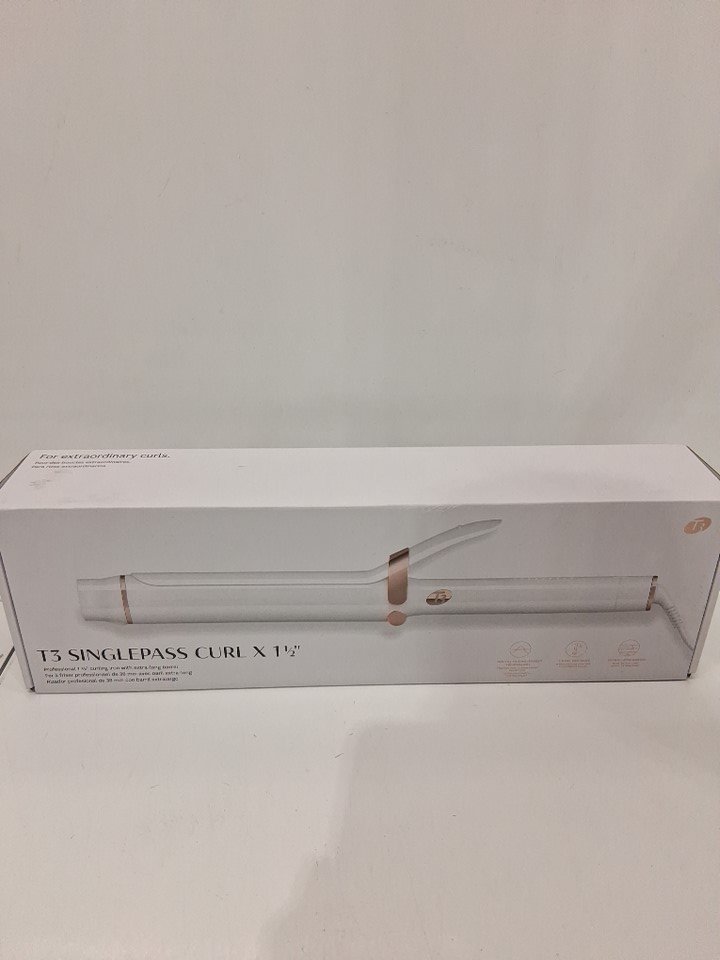 T3 SINGLEPASS CURL 1 1/2" PROFESSIONAL CERAMIC CURLING IRON - WHITE/ROSE GOLD (MODEL: 77545).