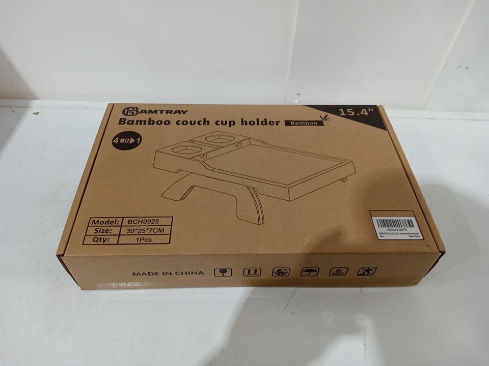 BAMBOOTRAY BAMBOO COUCH 4-IN-1 CUP HOLDER - 15.3" x 9.84" x 2.75" - natural bamboo (MODEL: BCH3925)