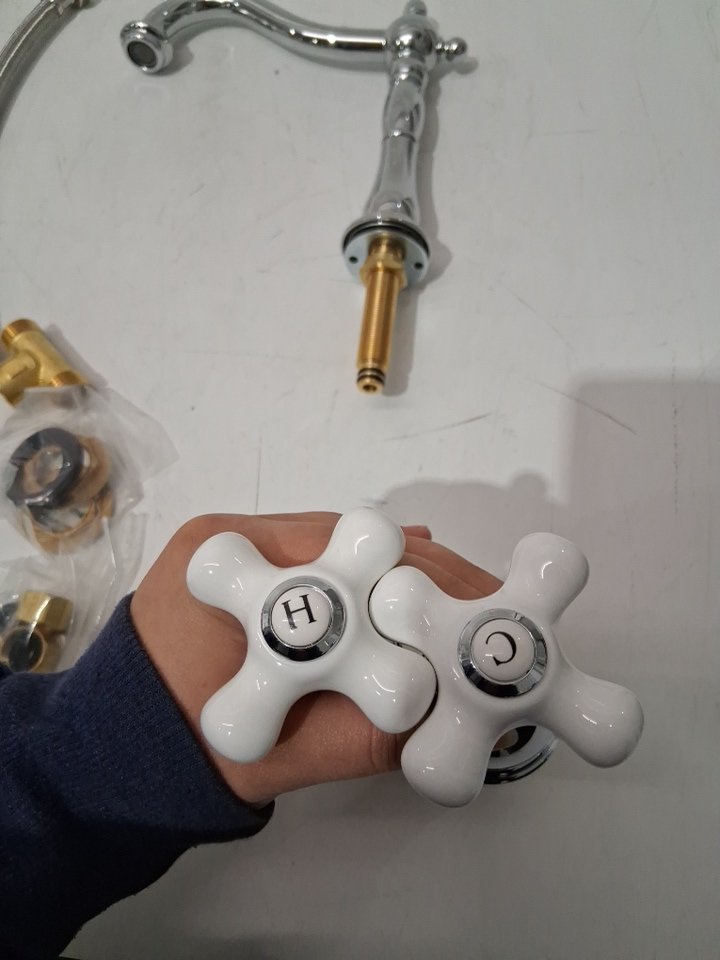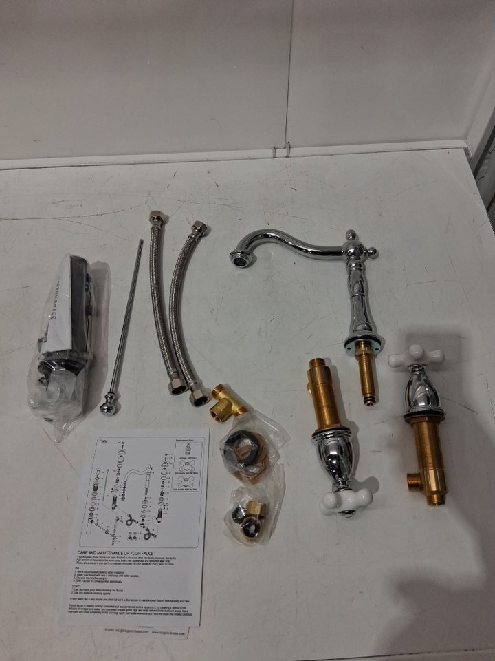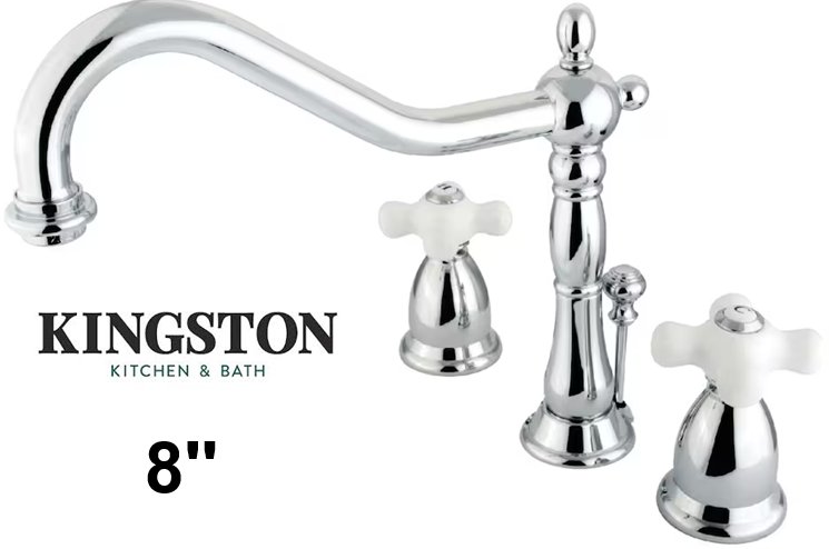 KINGSTON VINTAGE KITCHEN AND BATH HERITAGE Porcelain COLLECTION WIDESPREAD LAVATORY FAUCET - CHROME/WHITE