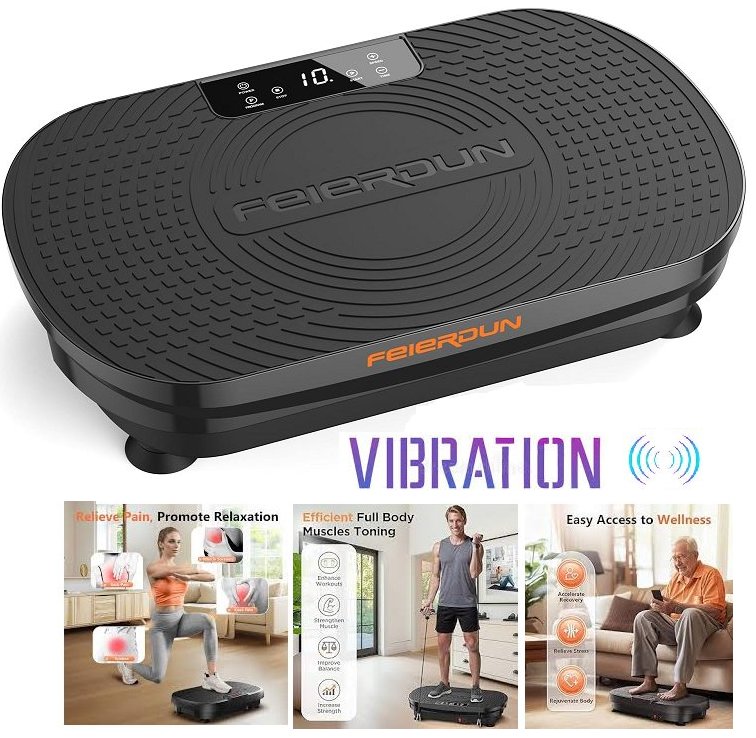 FEIERDUN Vibration Plate Exercise Machine with loop bands and remote control - 330lb max - black (model: fedvp-la)
