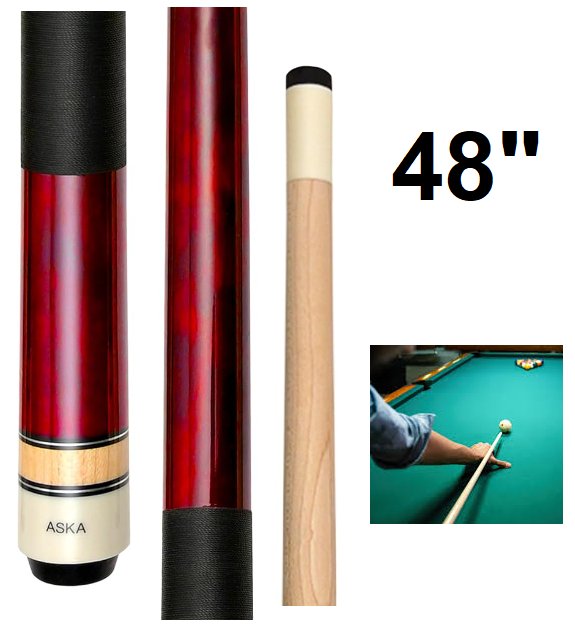 Short Kids Cue Stick LCS, Canadian Hard Rock Maple - HARD TIP - 48" - RED