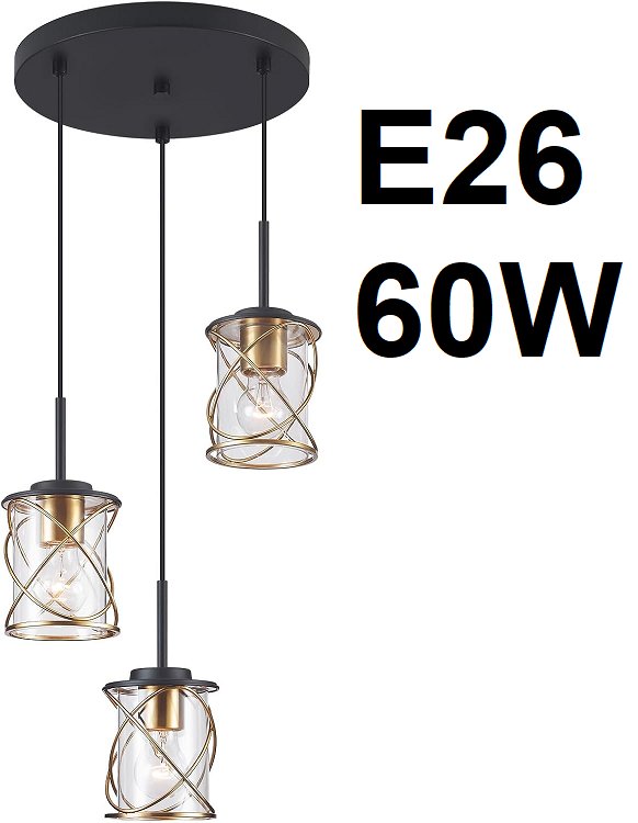 mavcadonf kitchen island 3-light pendant chandelier - e26 - 60w - MATTE black/GOLD