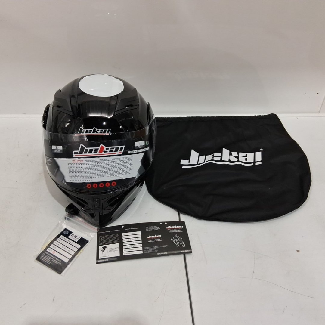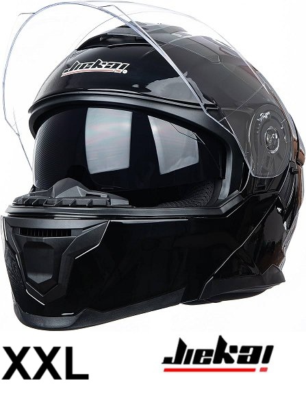JIE KAI New Enhanced Version Adult Motorcycle Modular Full Face Helmet WITH Flip up Dual Visor - XXL - GLOSS BLACK