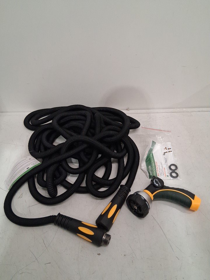 TheFitLife Expandable Garden Hose with spray nozzle and 8 spray patterns - 100ft - 3/4" - Black