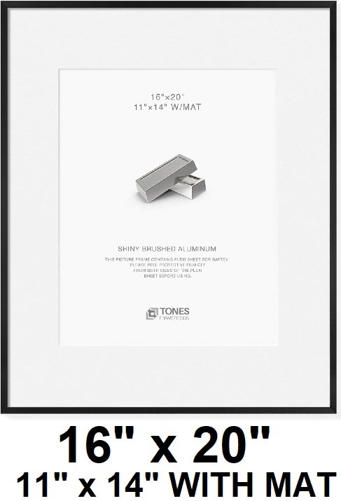 TONES FRAME DESIGN Metal Photo Frame - 16" X 20"/11" X 14" WITH mat - black shiny brushed aluminum